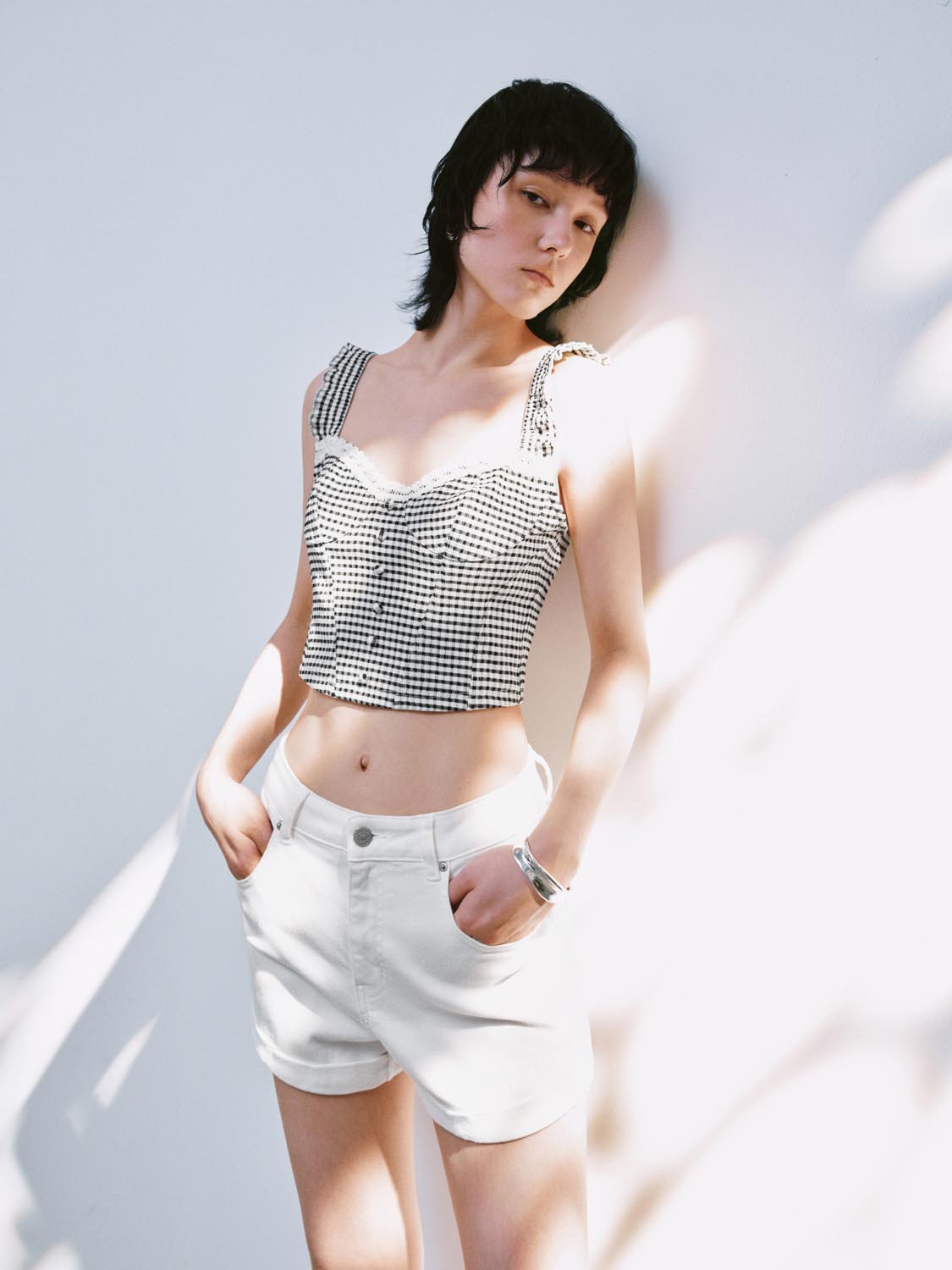 Plaid Wide Strap Cami Tops