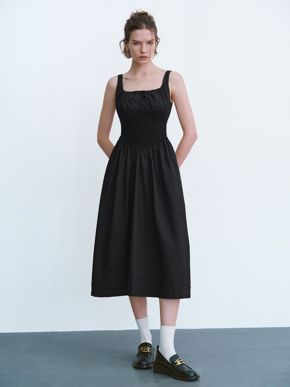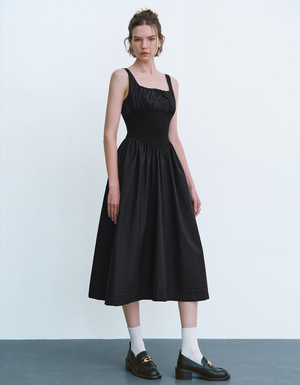 Square-cut Collar A-Line Dress