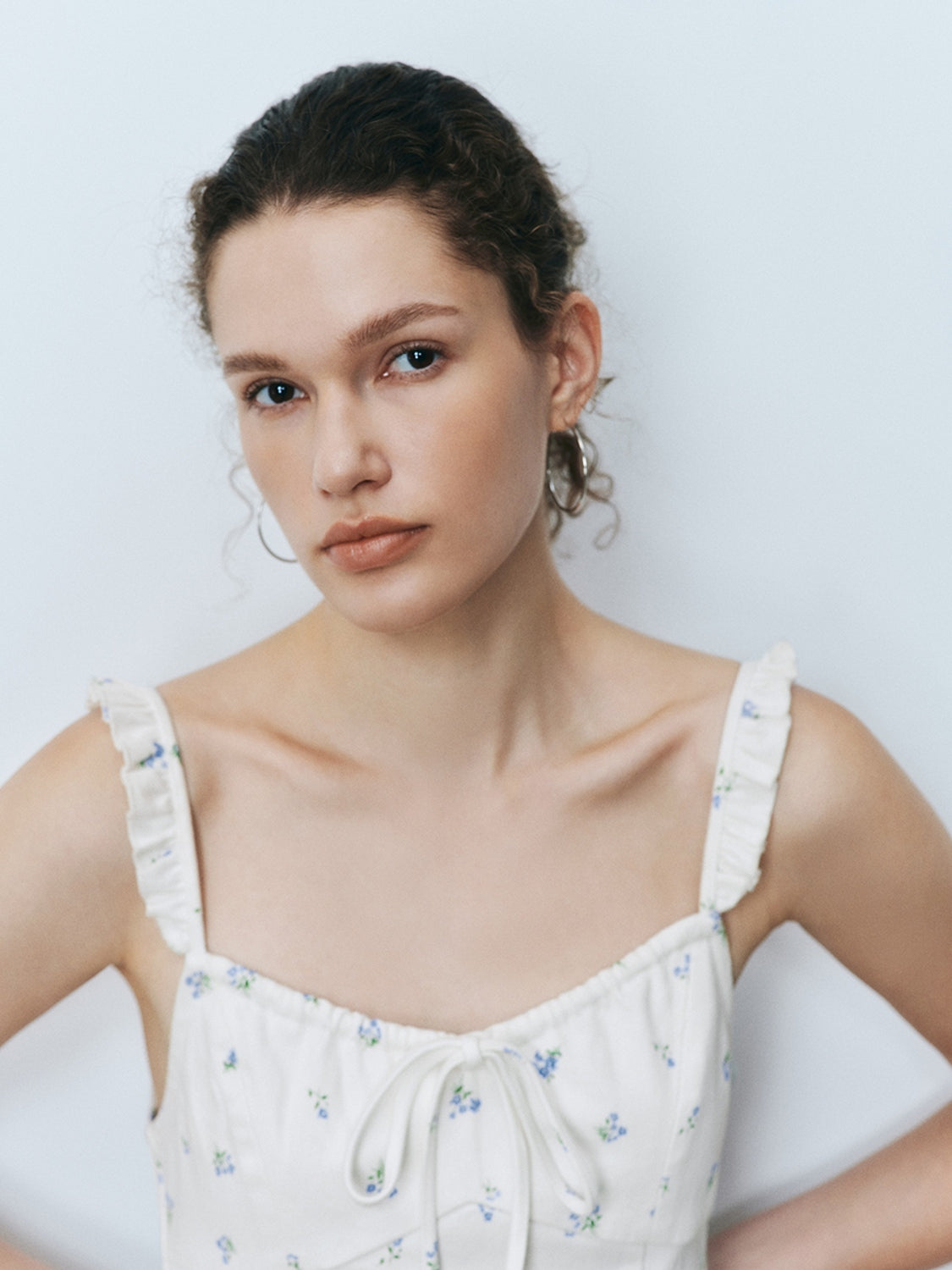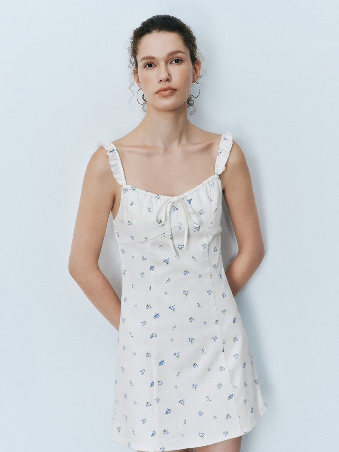 Wide Strap Floral Denim Dresses