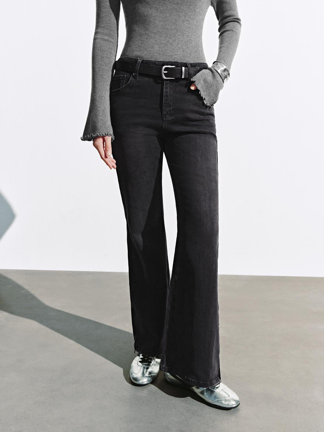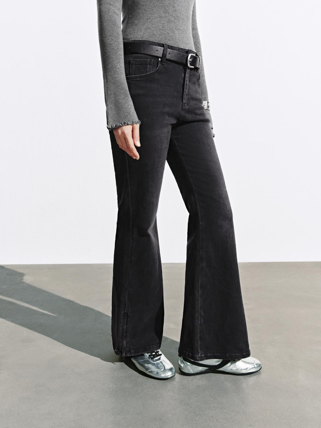 Belted Flare Leg Jeans