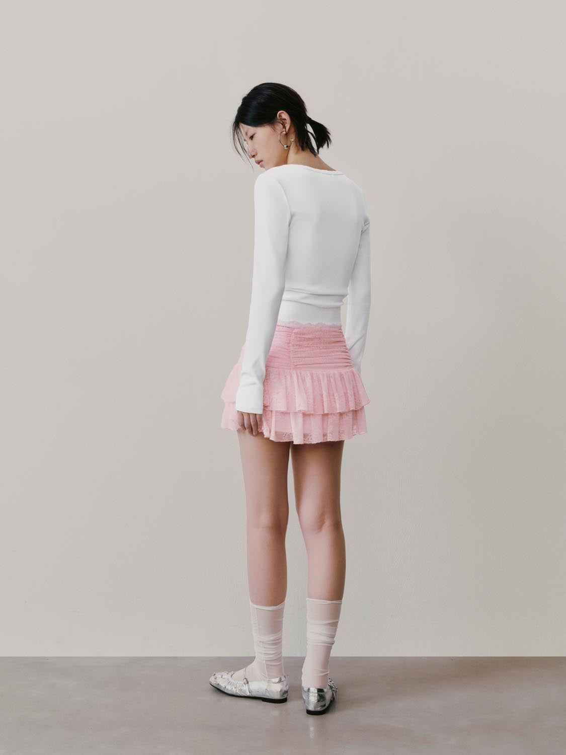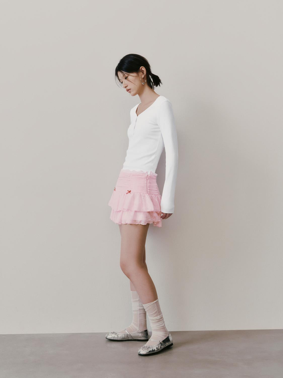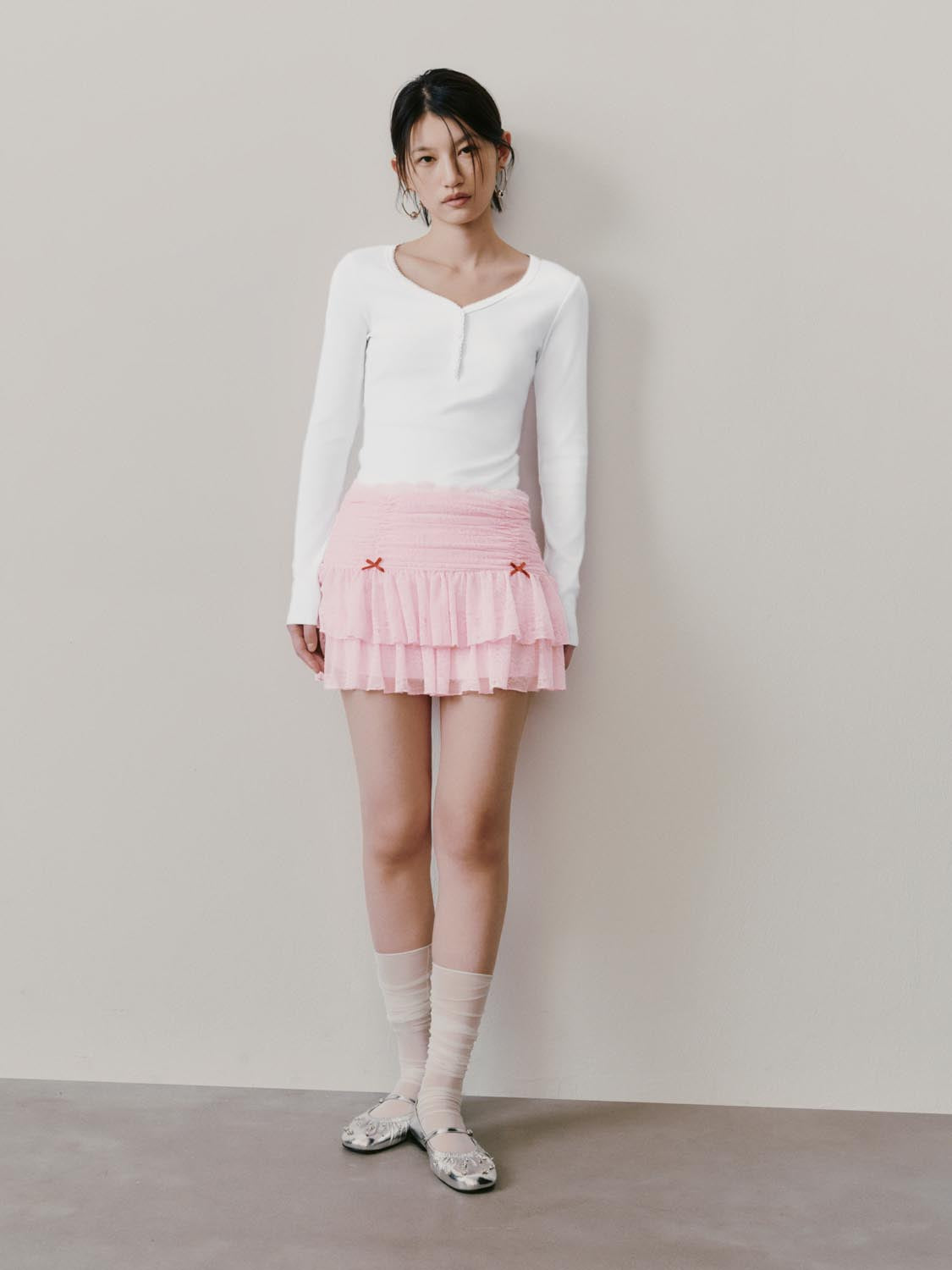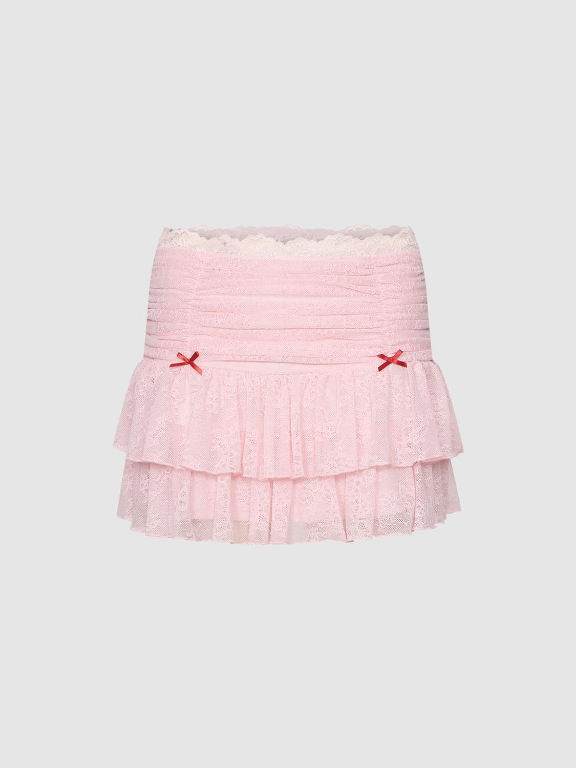 Bow Detail Laced Tiered Mini Skirts
