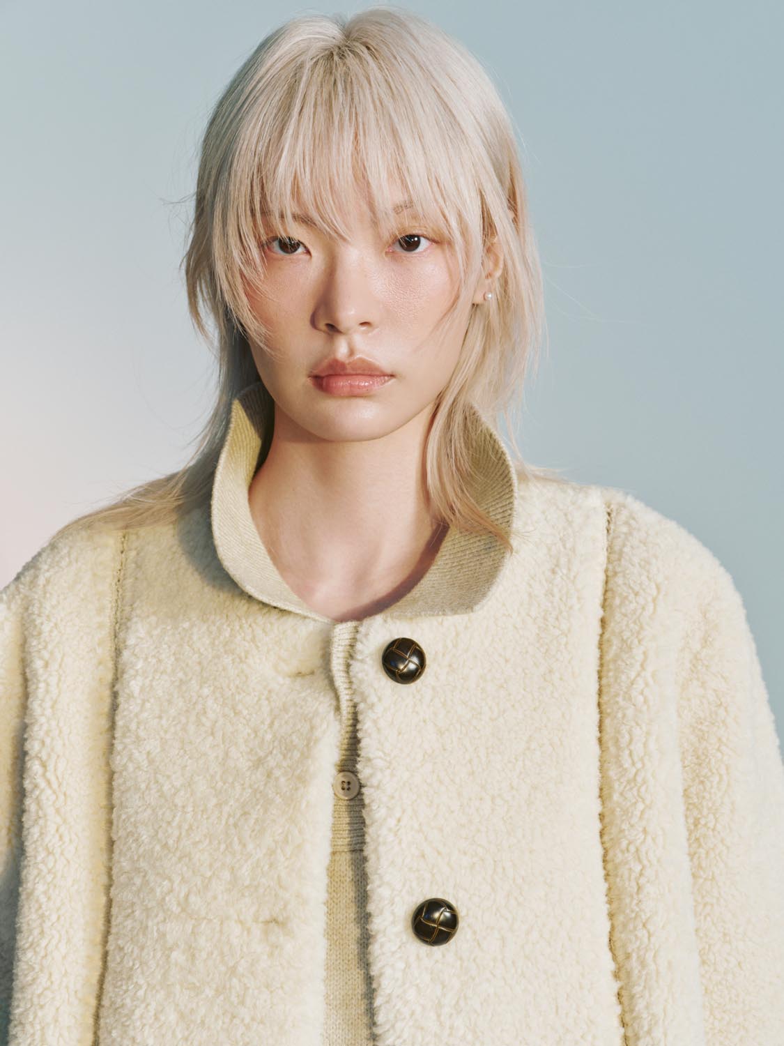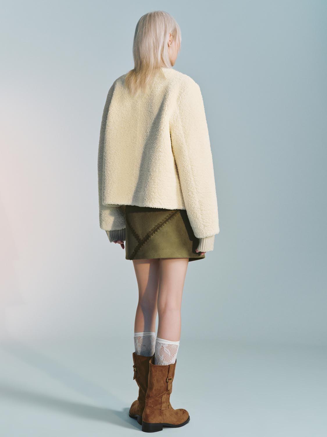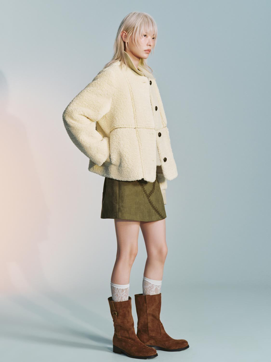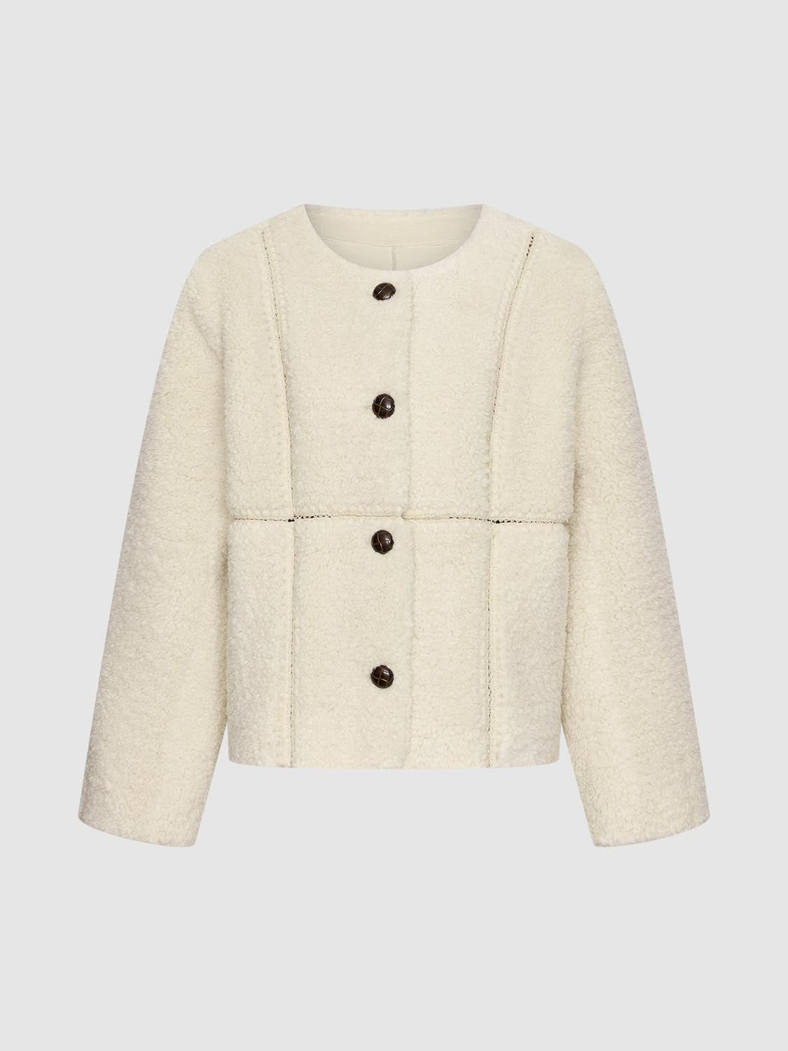 Collarless Crew Neck Seamed Jackets