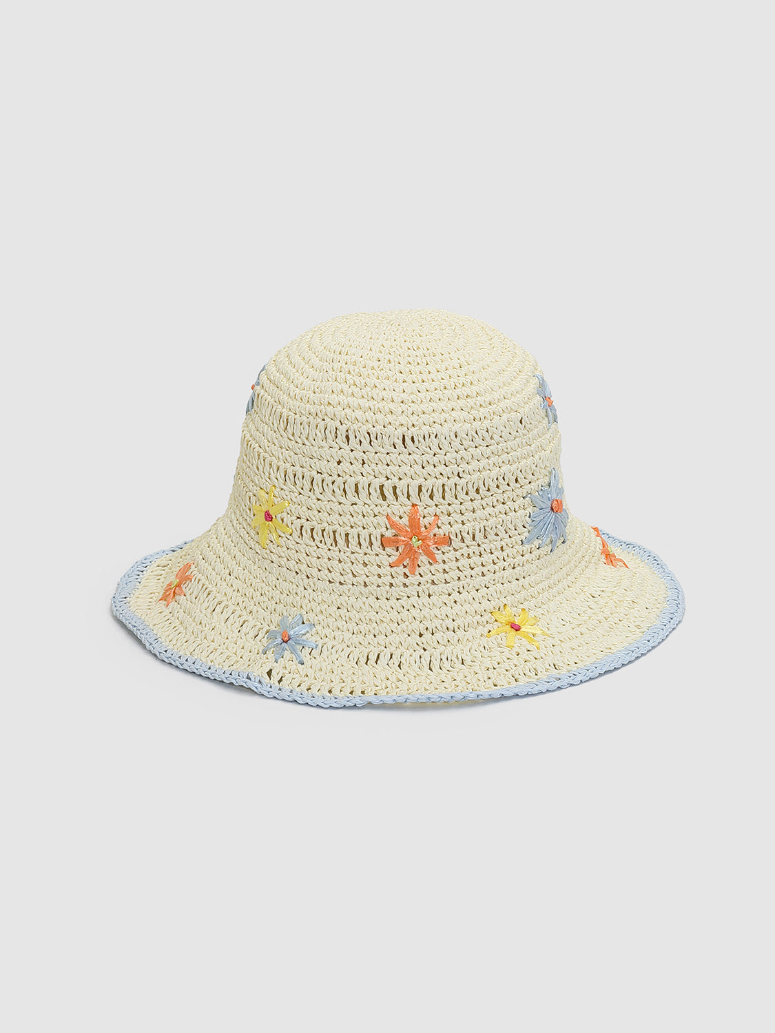 Contrast Trim Embroidered Crochet Bucket Hats