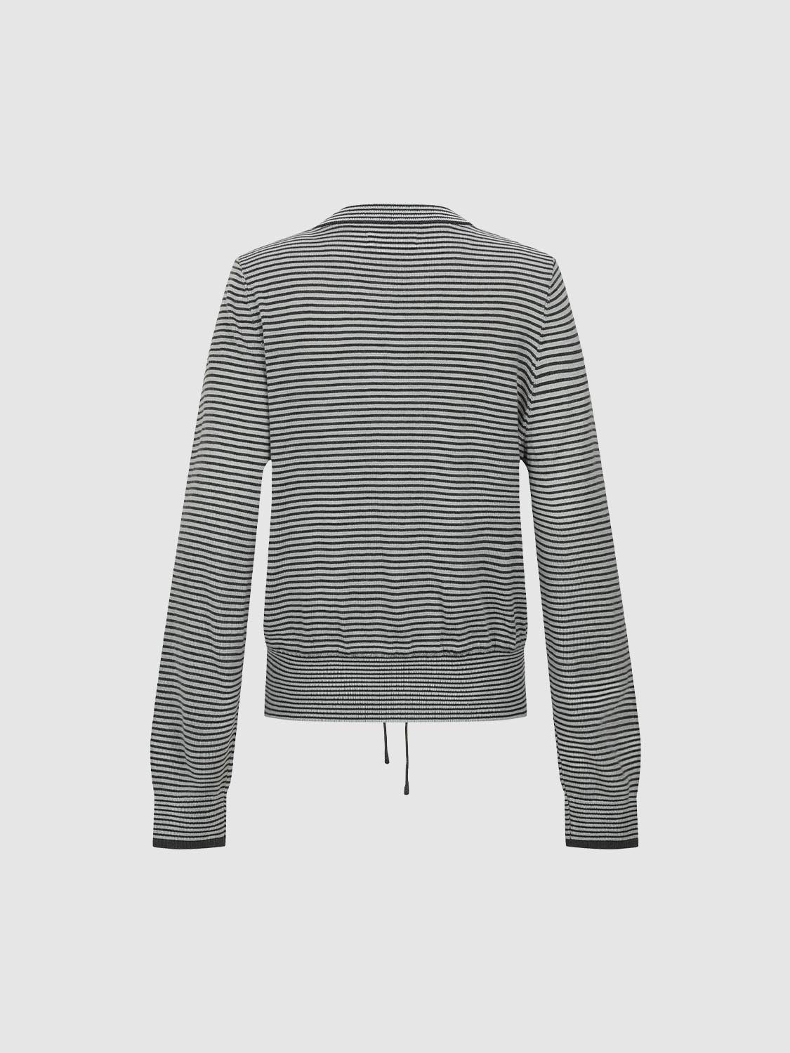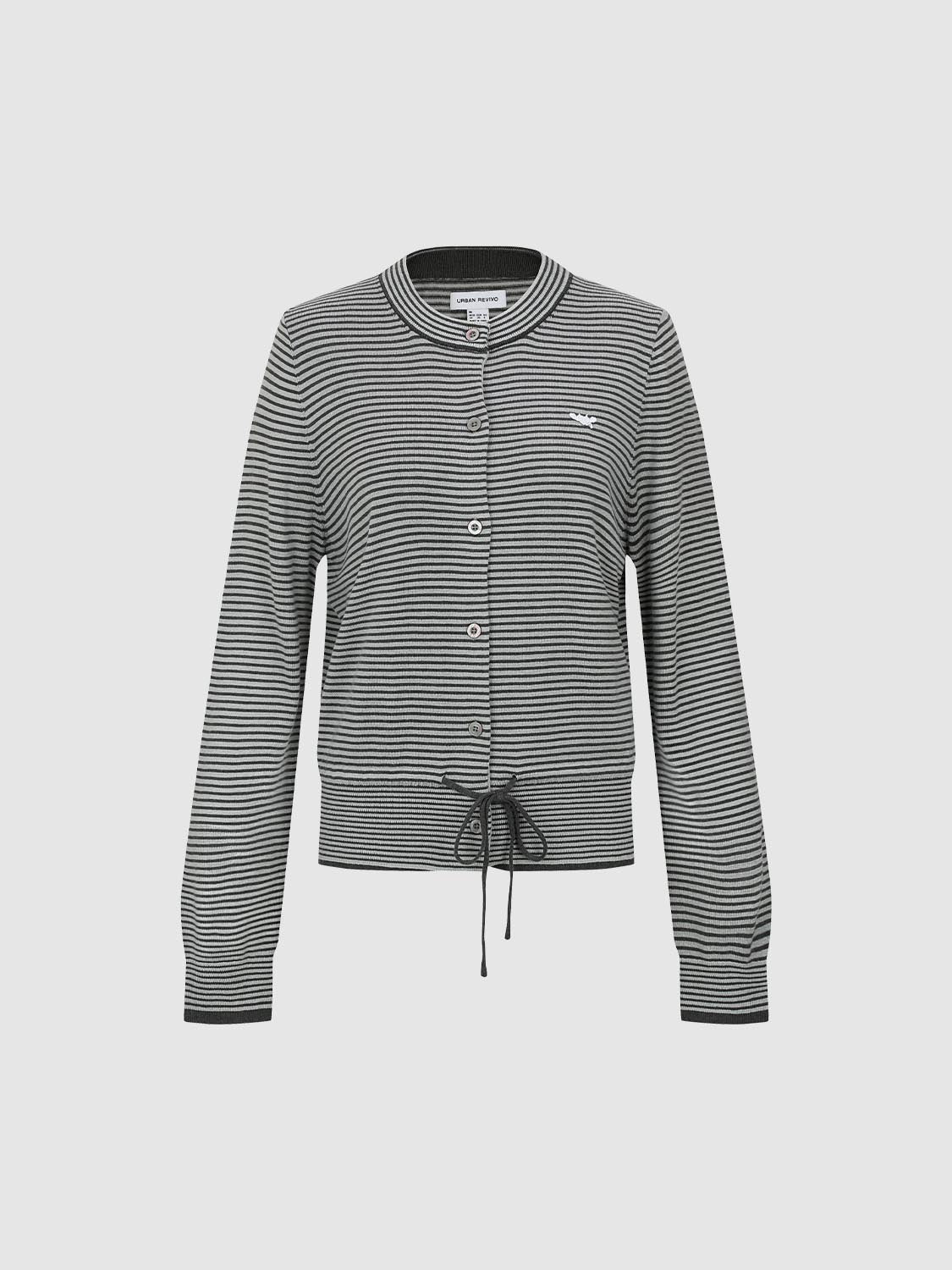 Crew Neck Embroidered Striped Tie Detail Knitted Cardigans