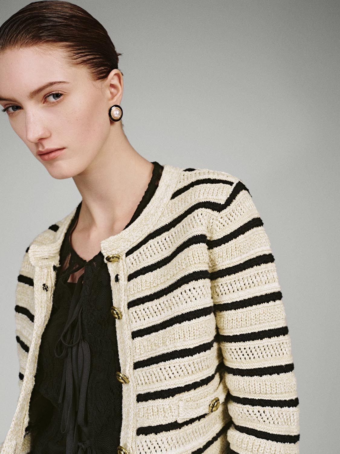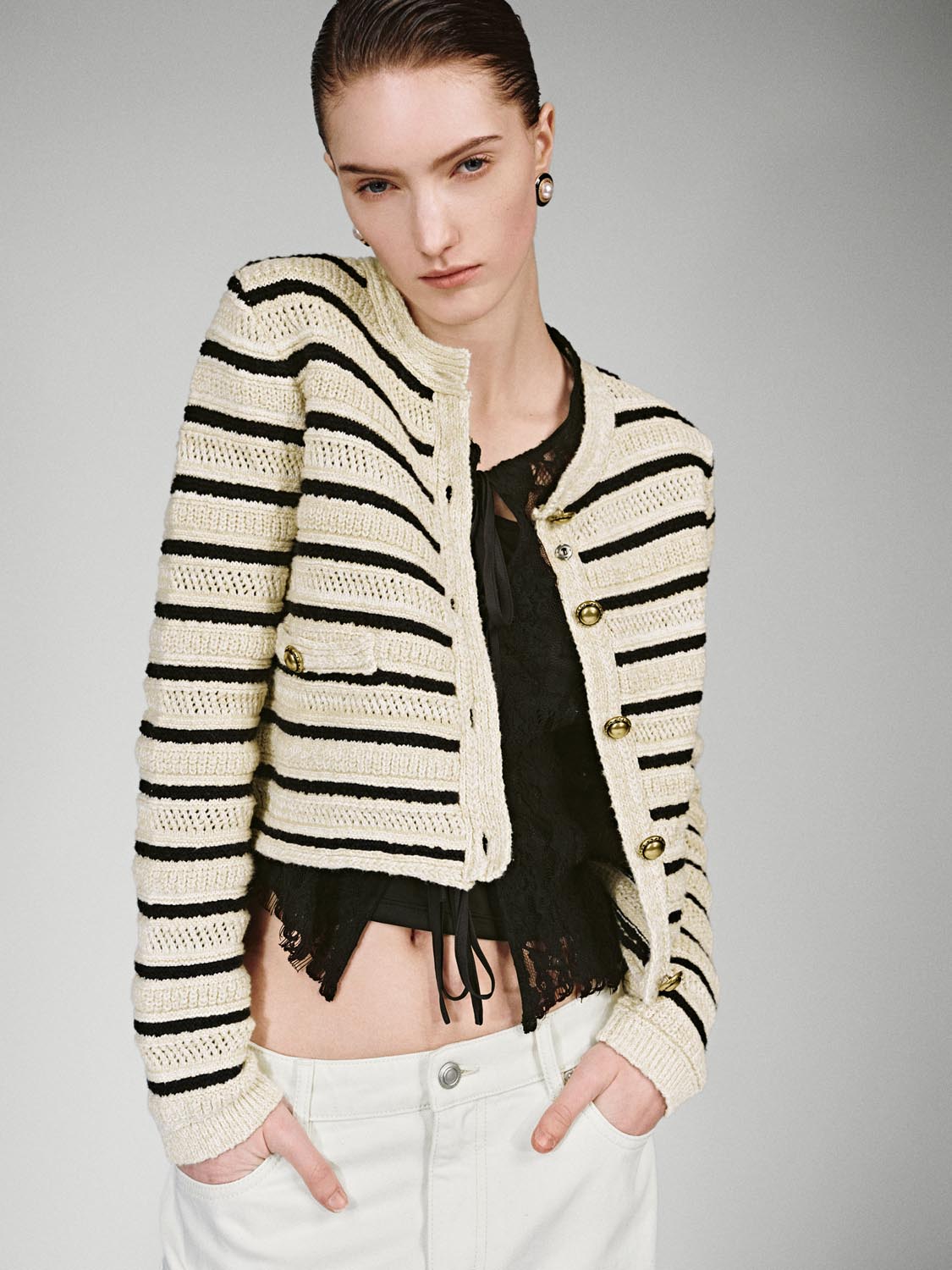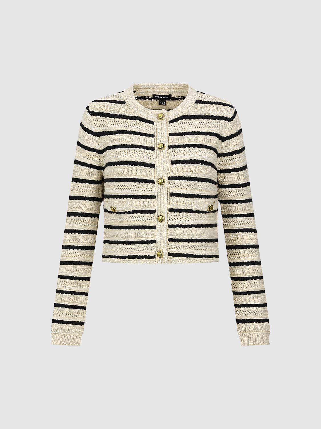 Crew Neck Striped Knitted Cardigans