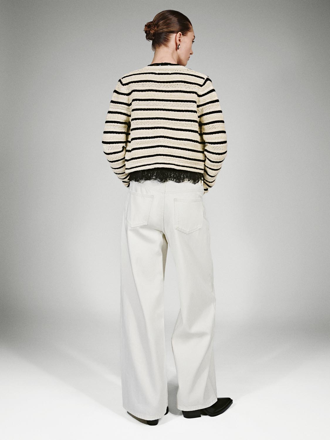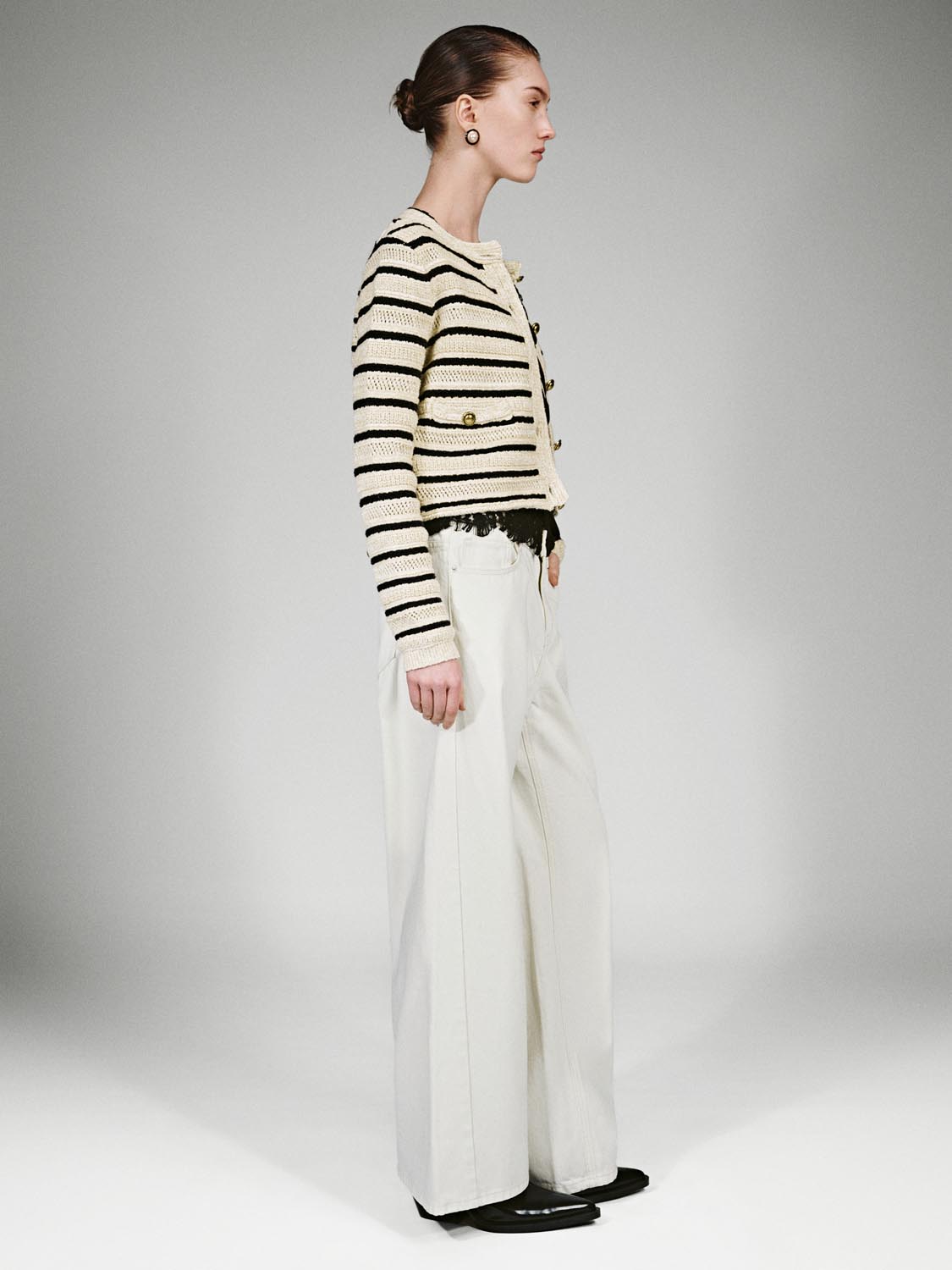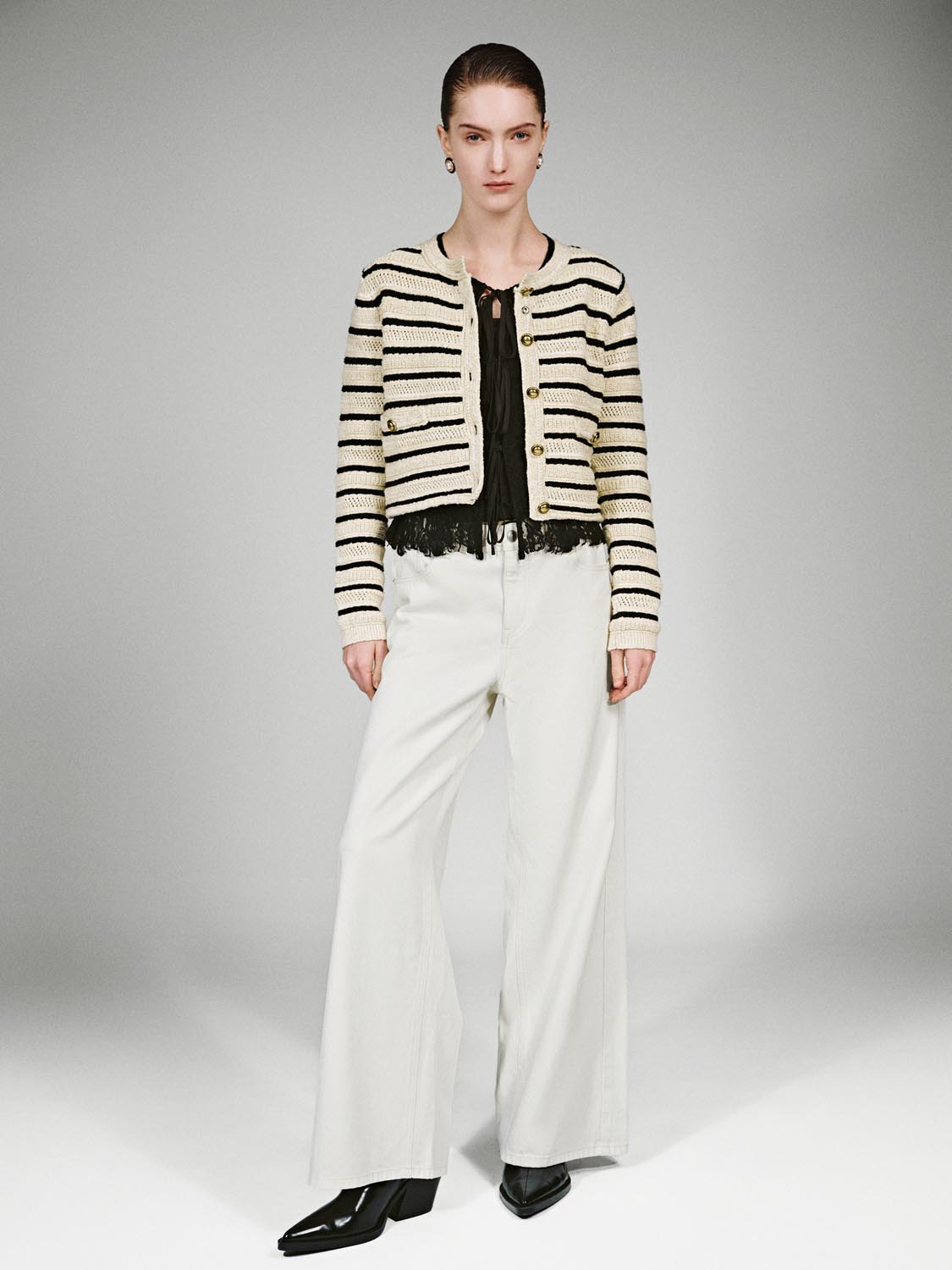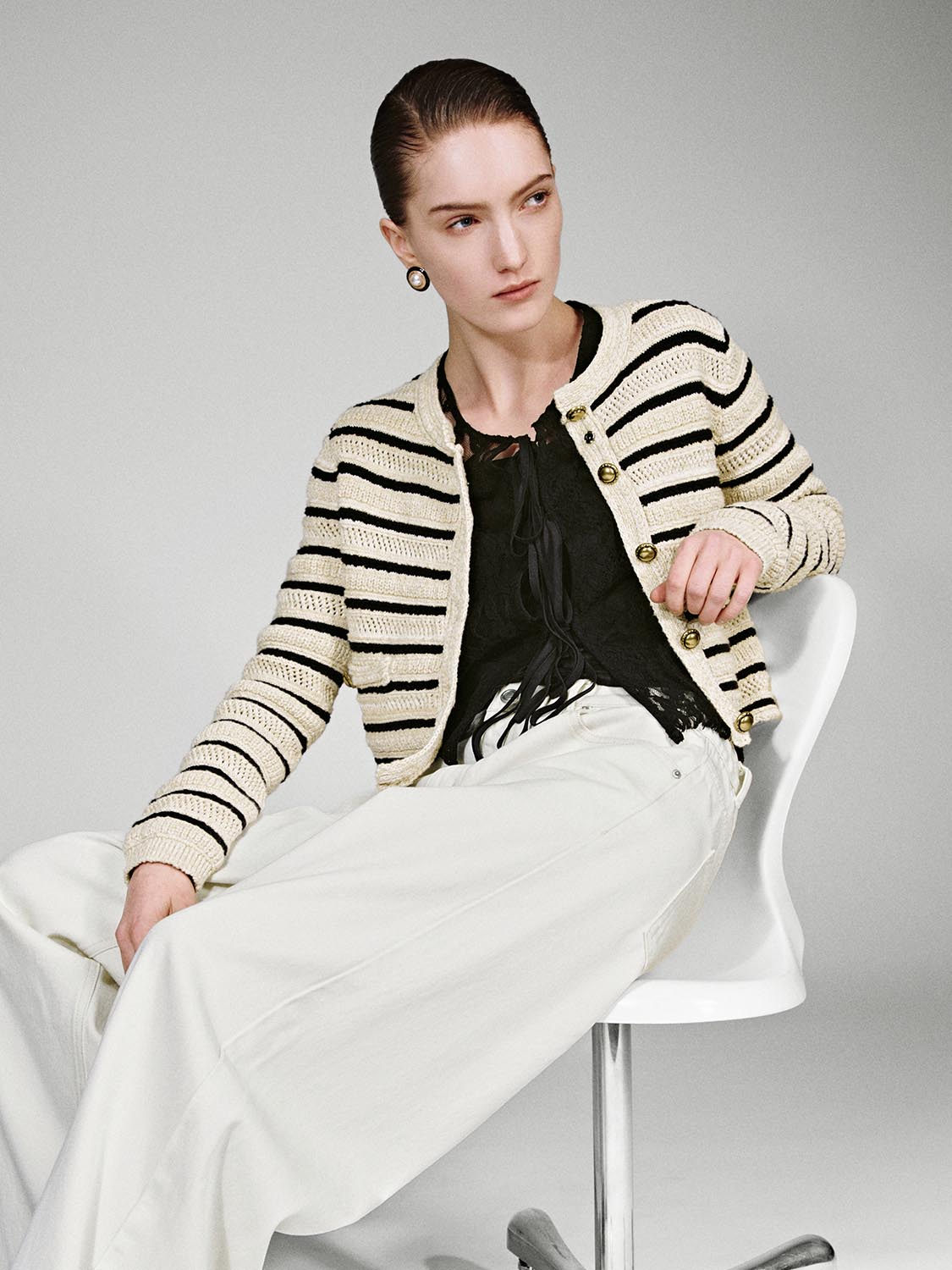 Crew Neck Striped Knitted Cardigans