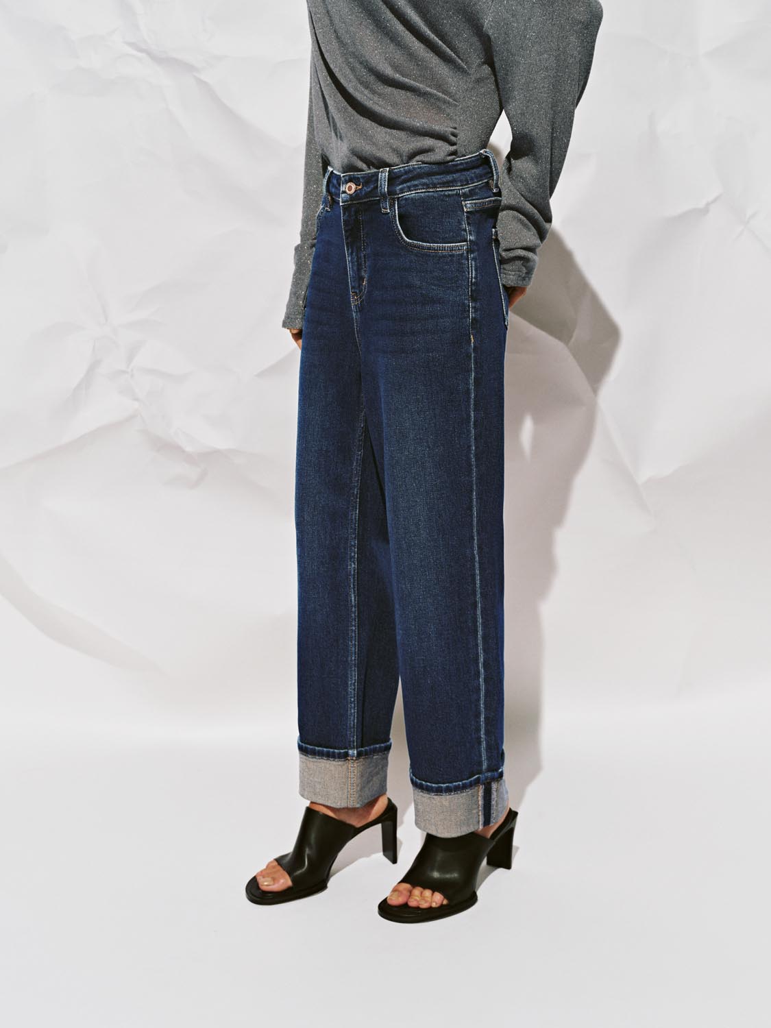 Cuffed Straight Leg Jeans