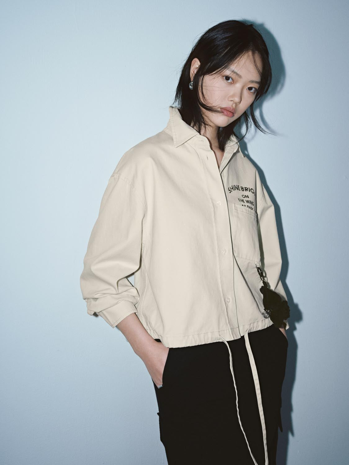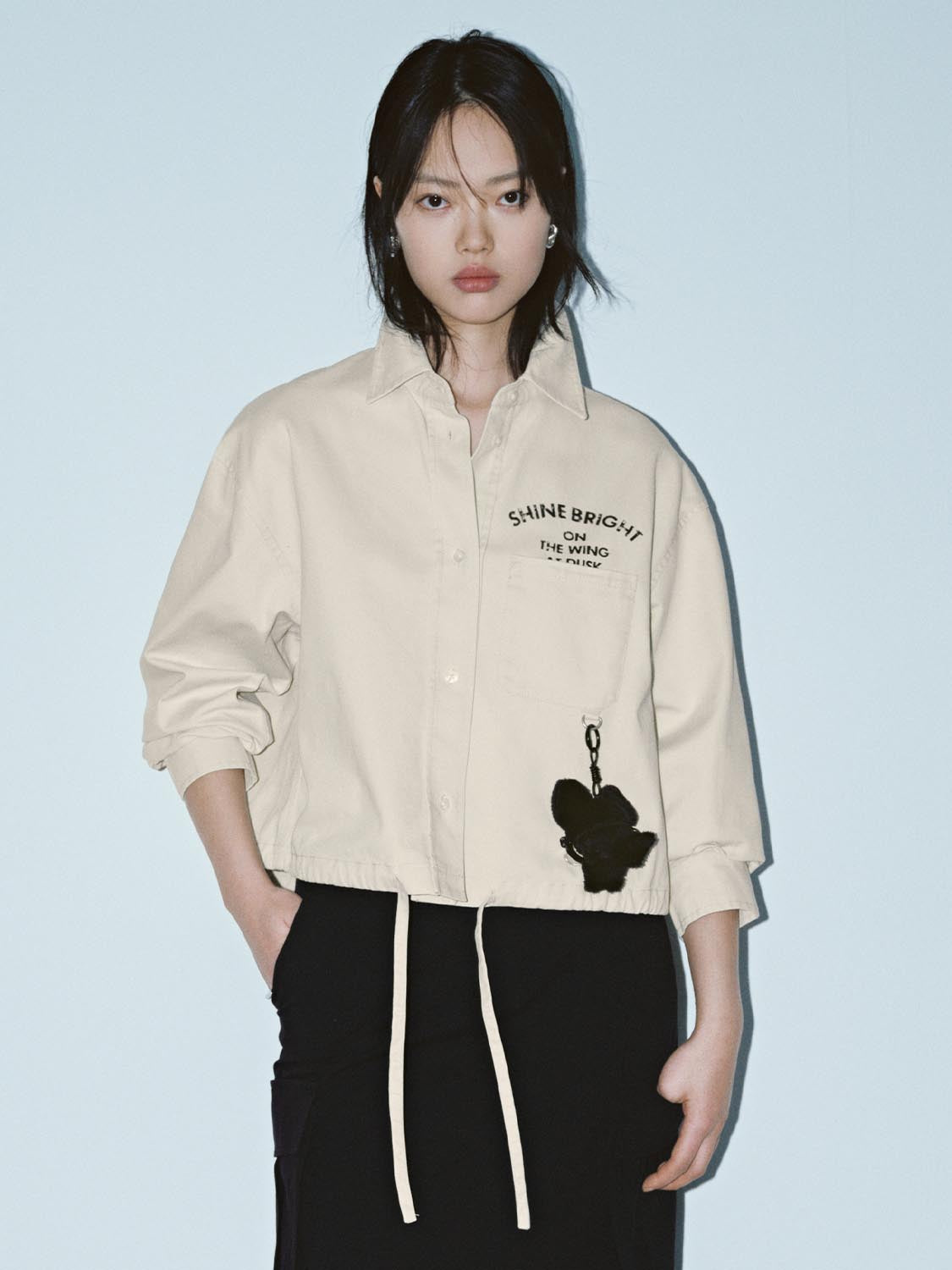 Drawstring Patch Pocket Printed Shirts