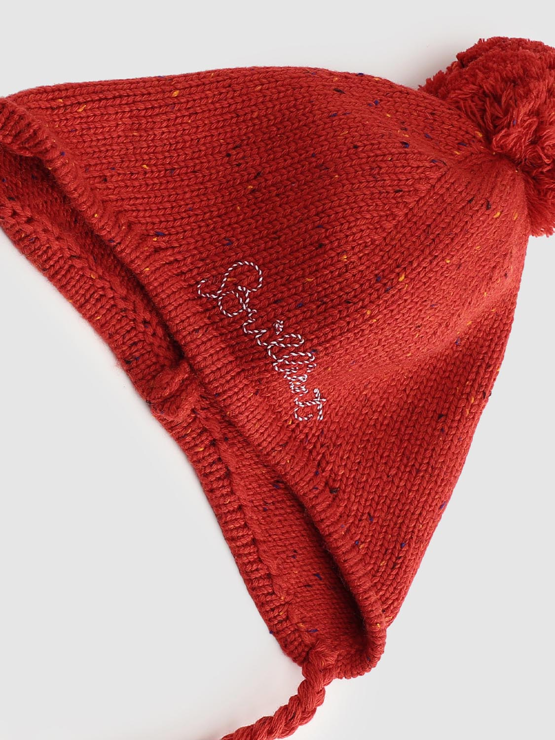 Embroidered Fluffy Ball Beanie Hat