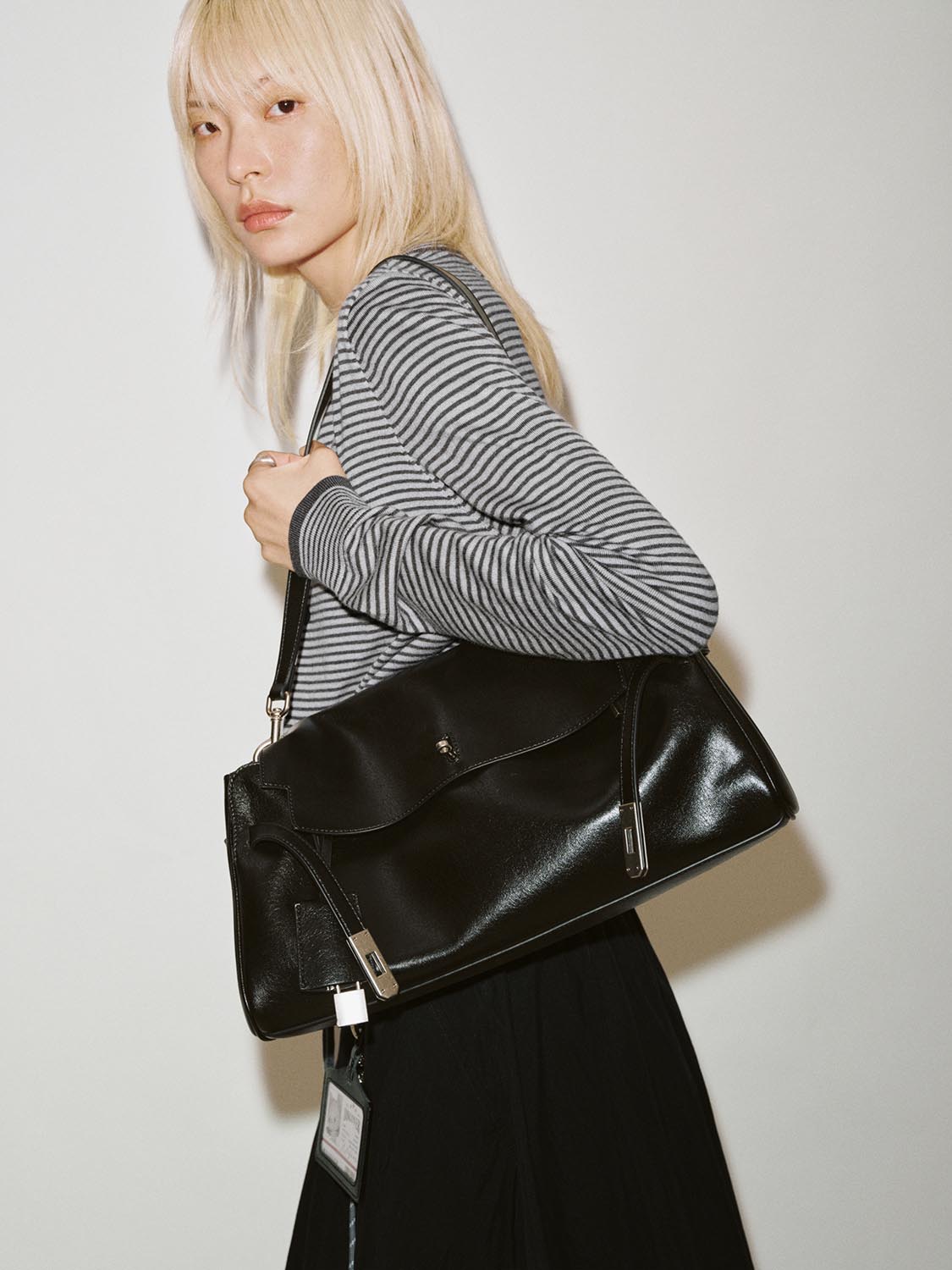 Faux Leather Buckle Detail Shoulder Bags