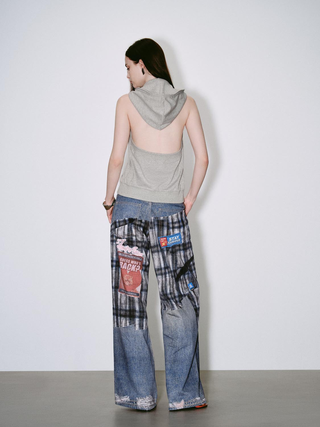 Paneled Ripped Denim Jeans
