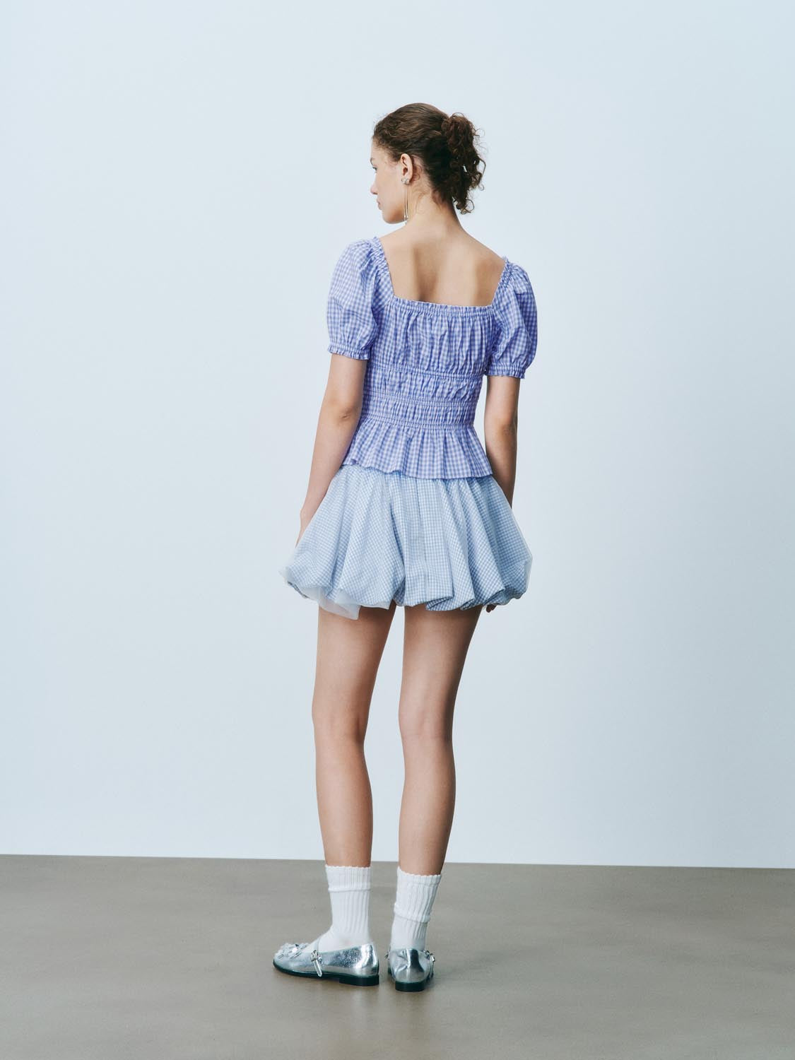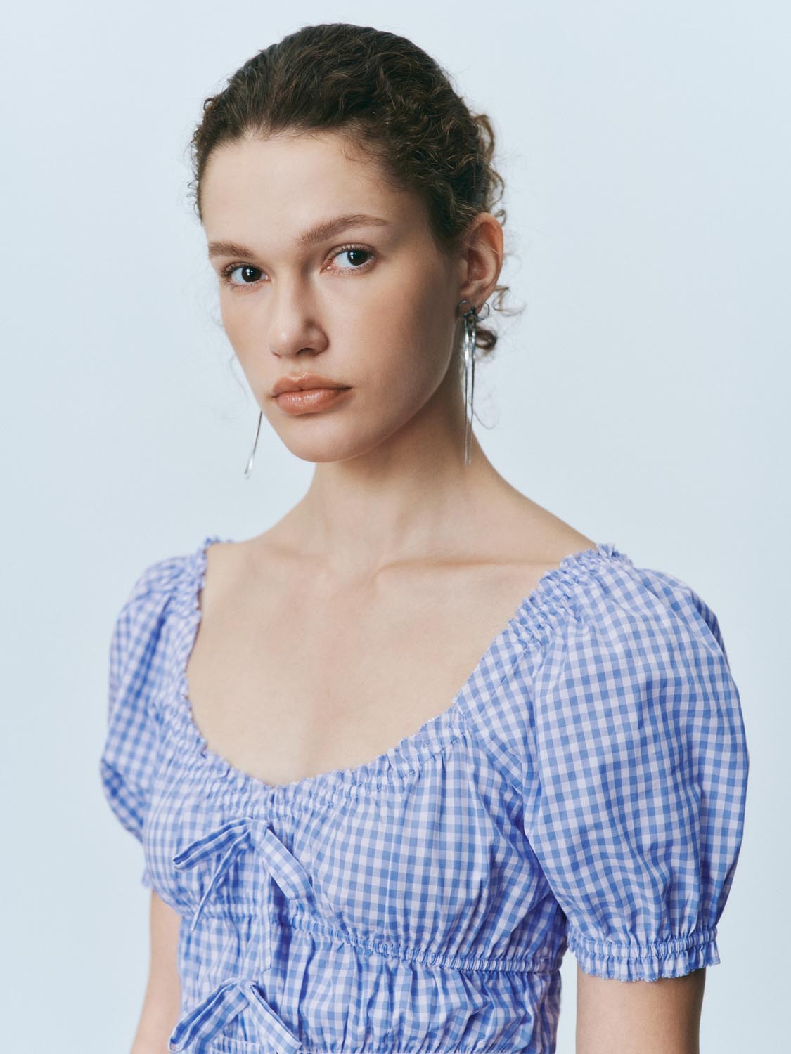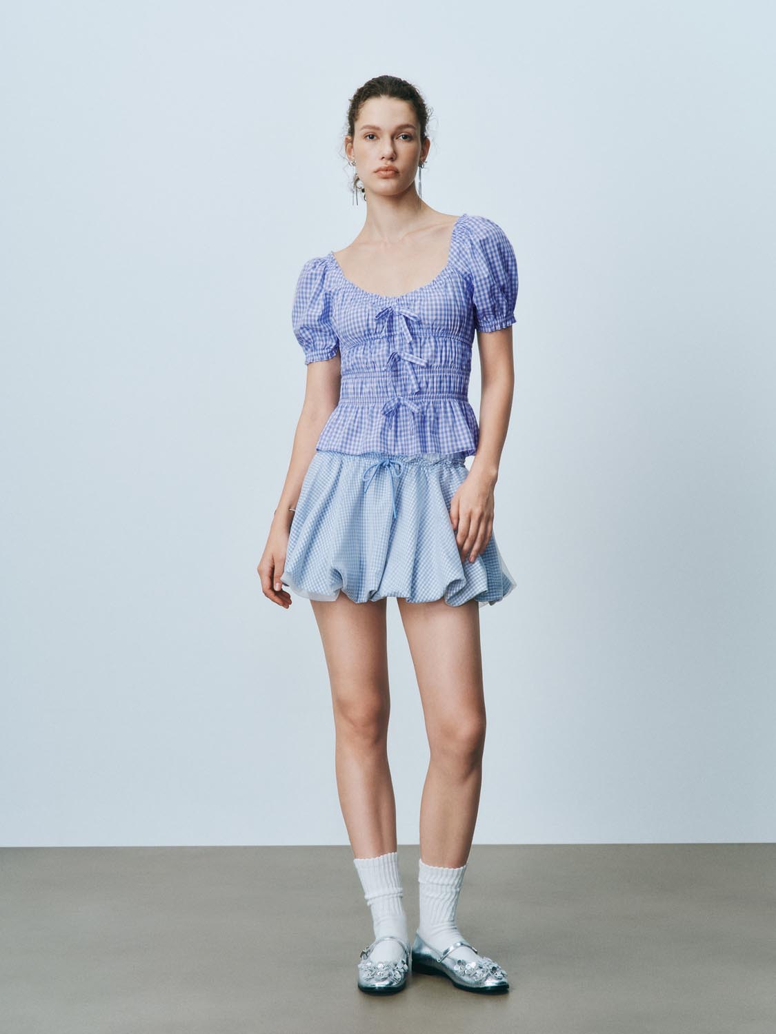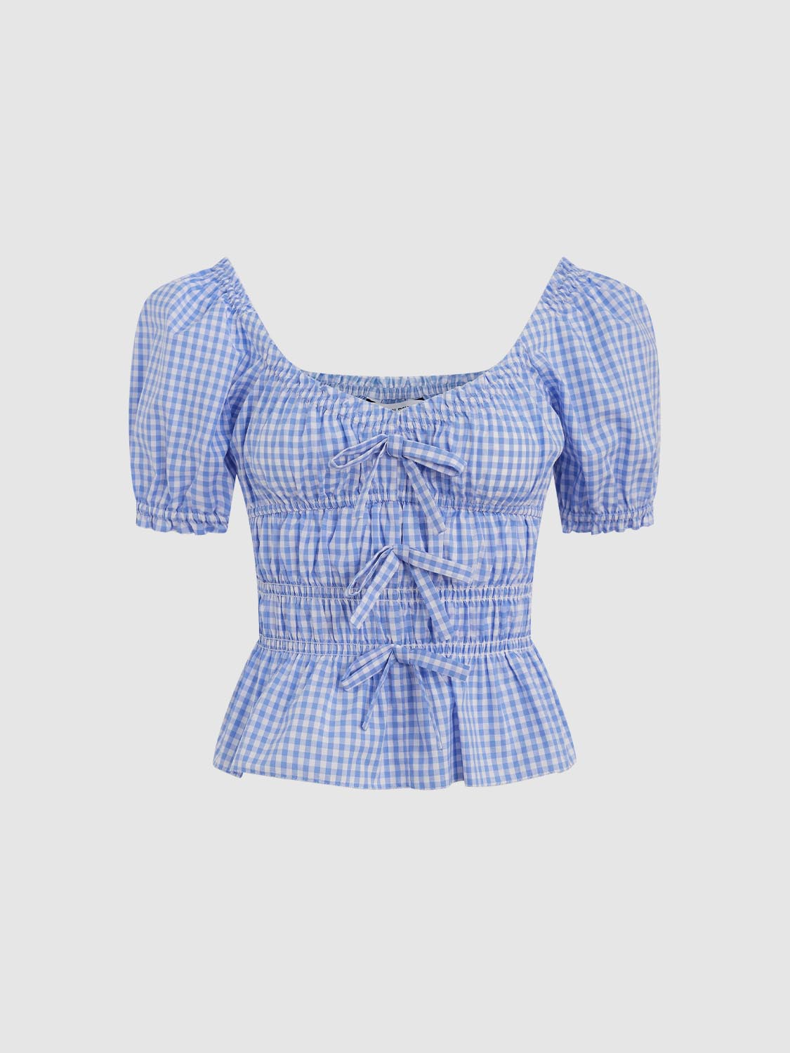 Plaid Shirred Bow Décor Blouses