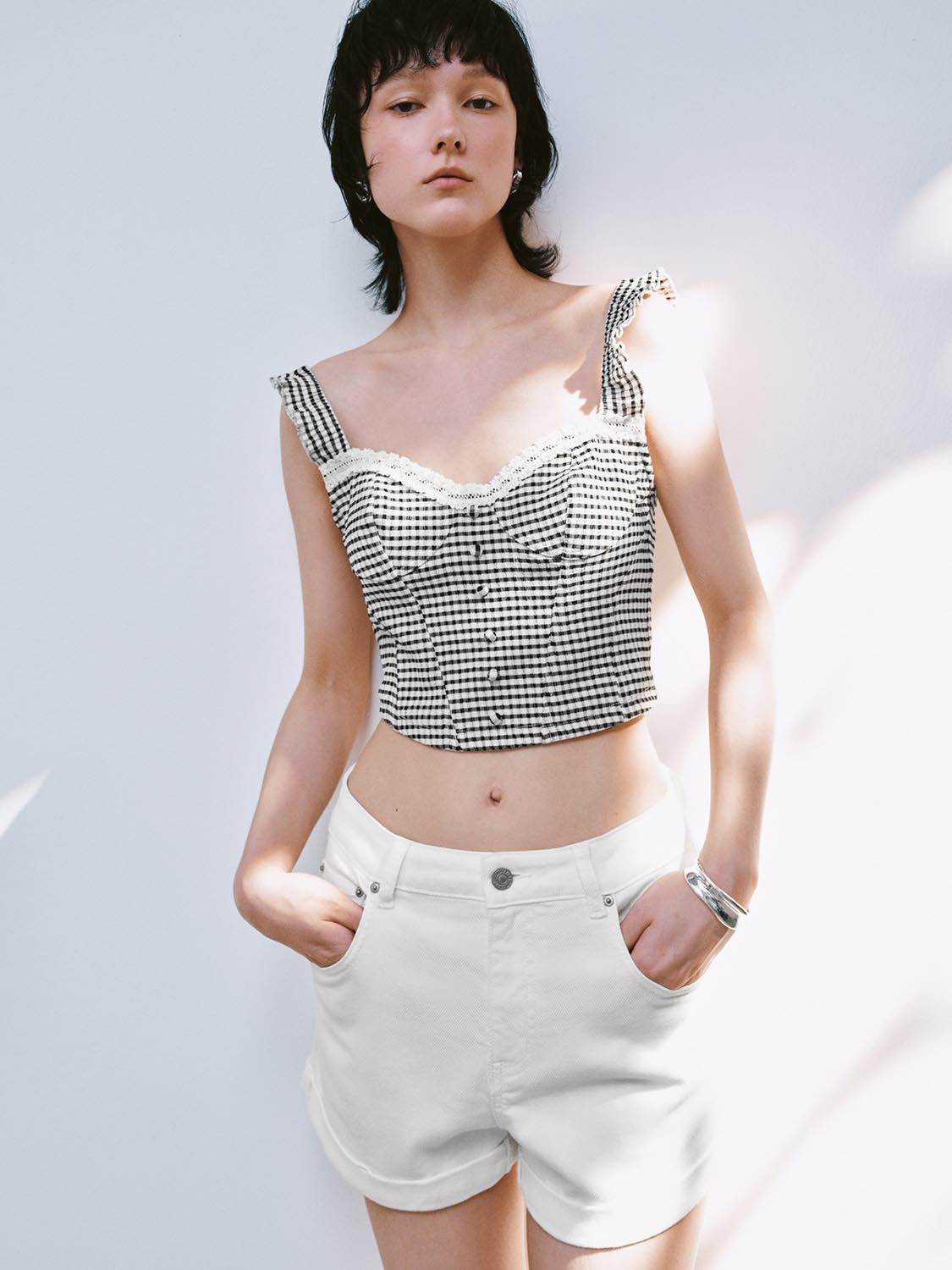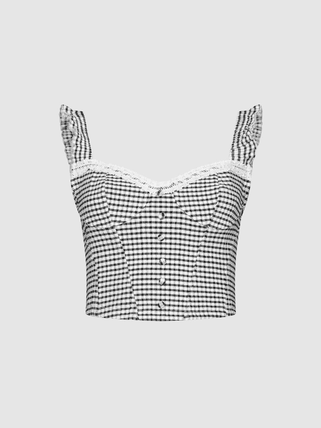 Plaid Wide Strap Cami Tops