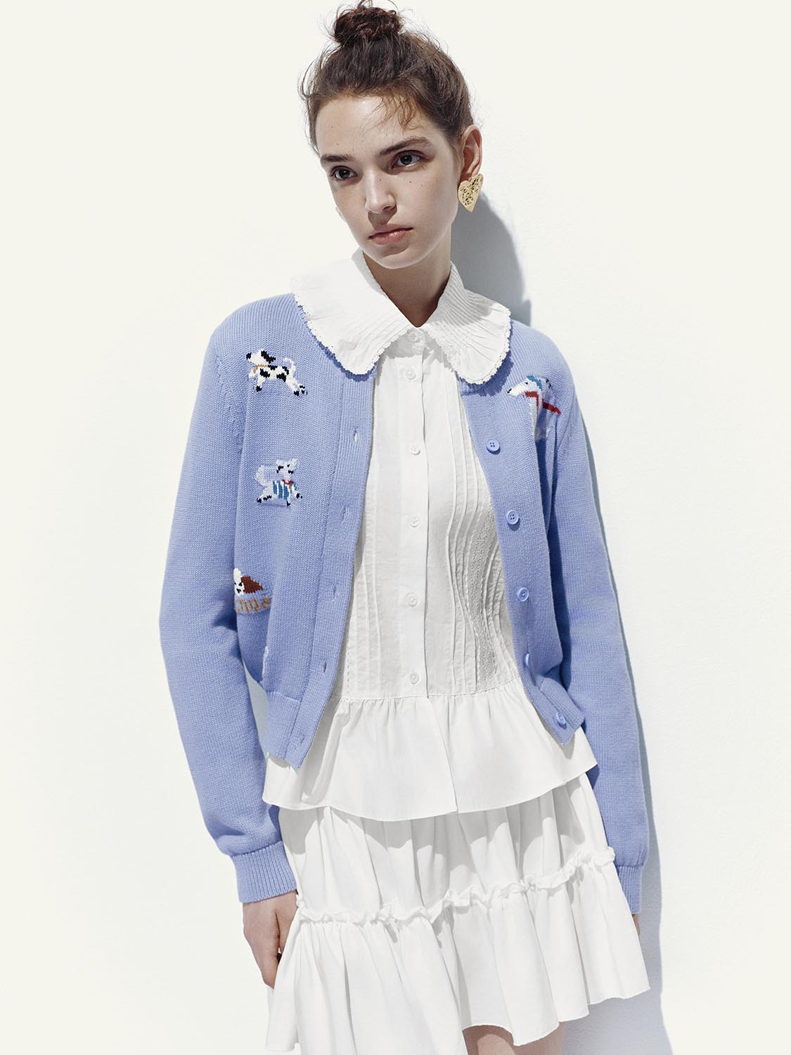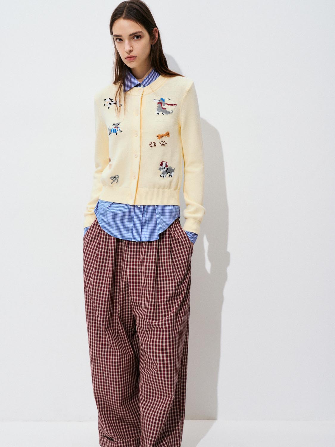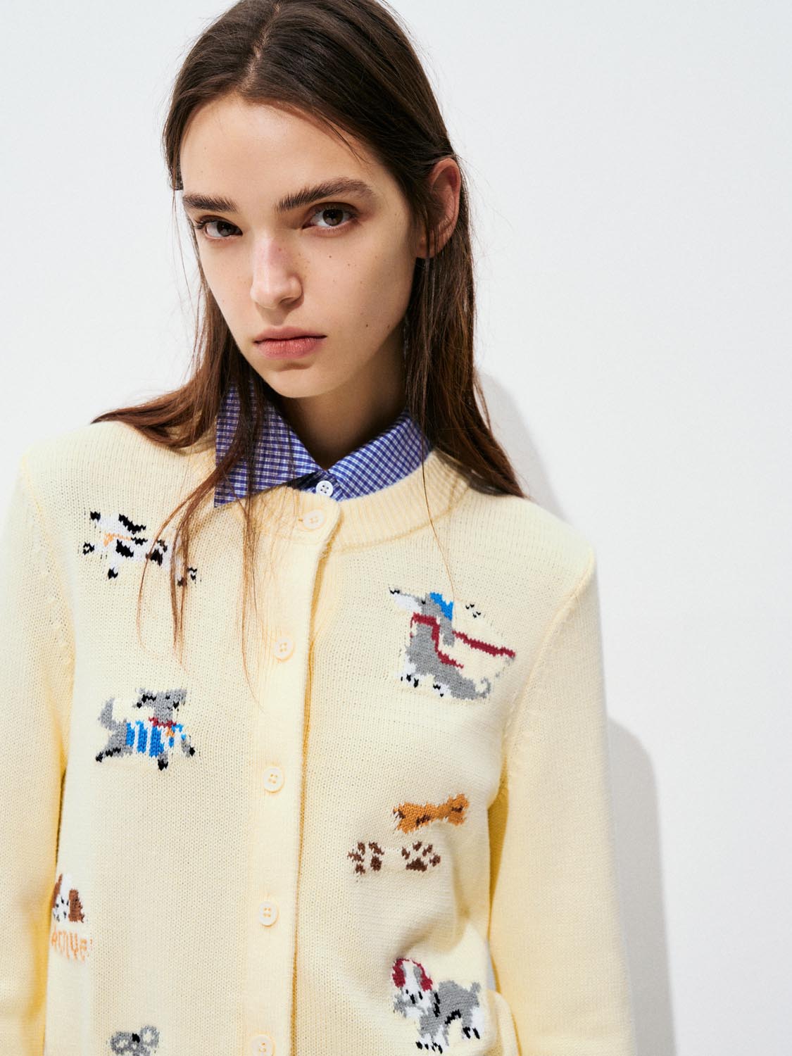 Printed Crew Neck Knitted Cardigans