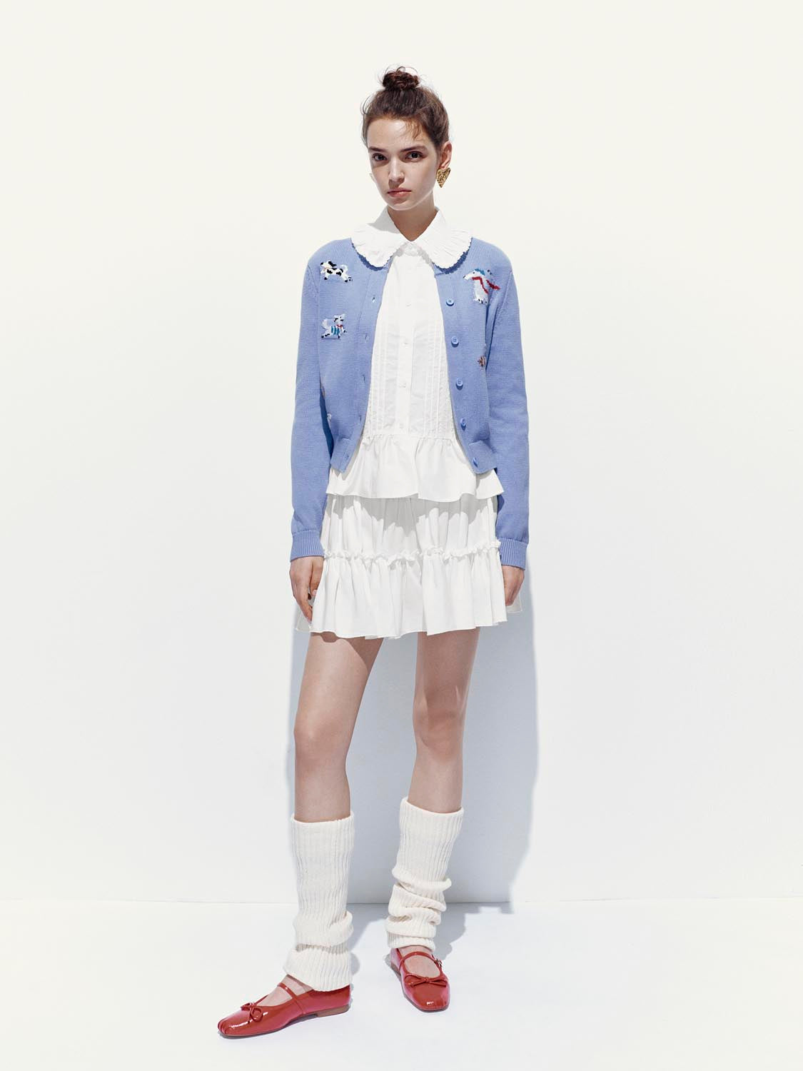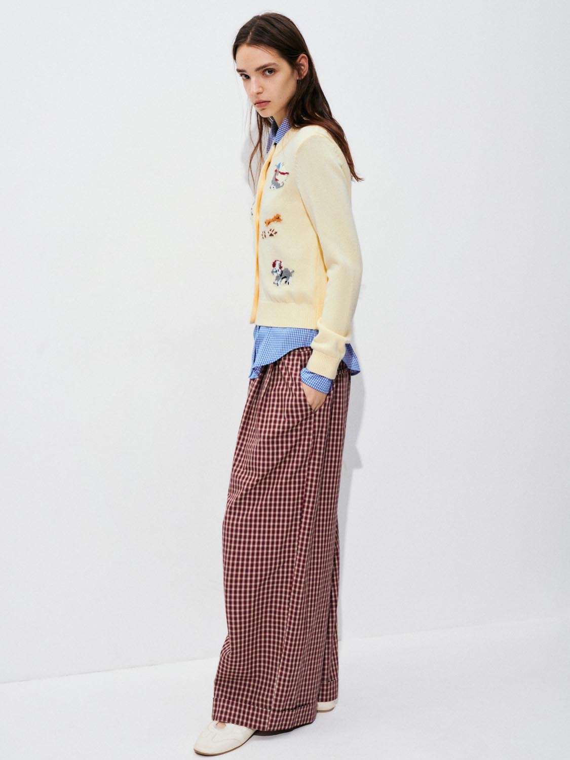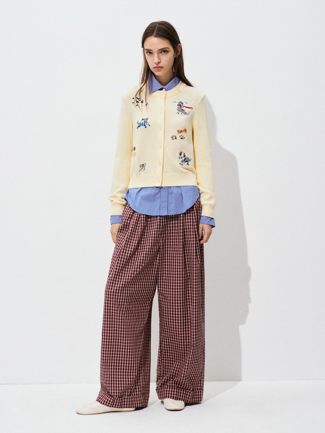 Printed Crew Neck Knitted Cardigans