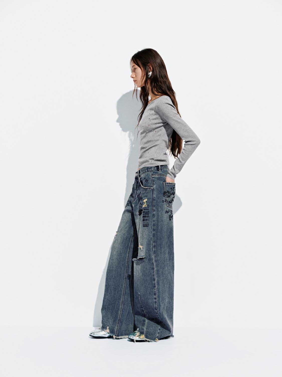 Ripped Loose Barrel Jeans