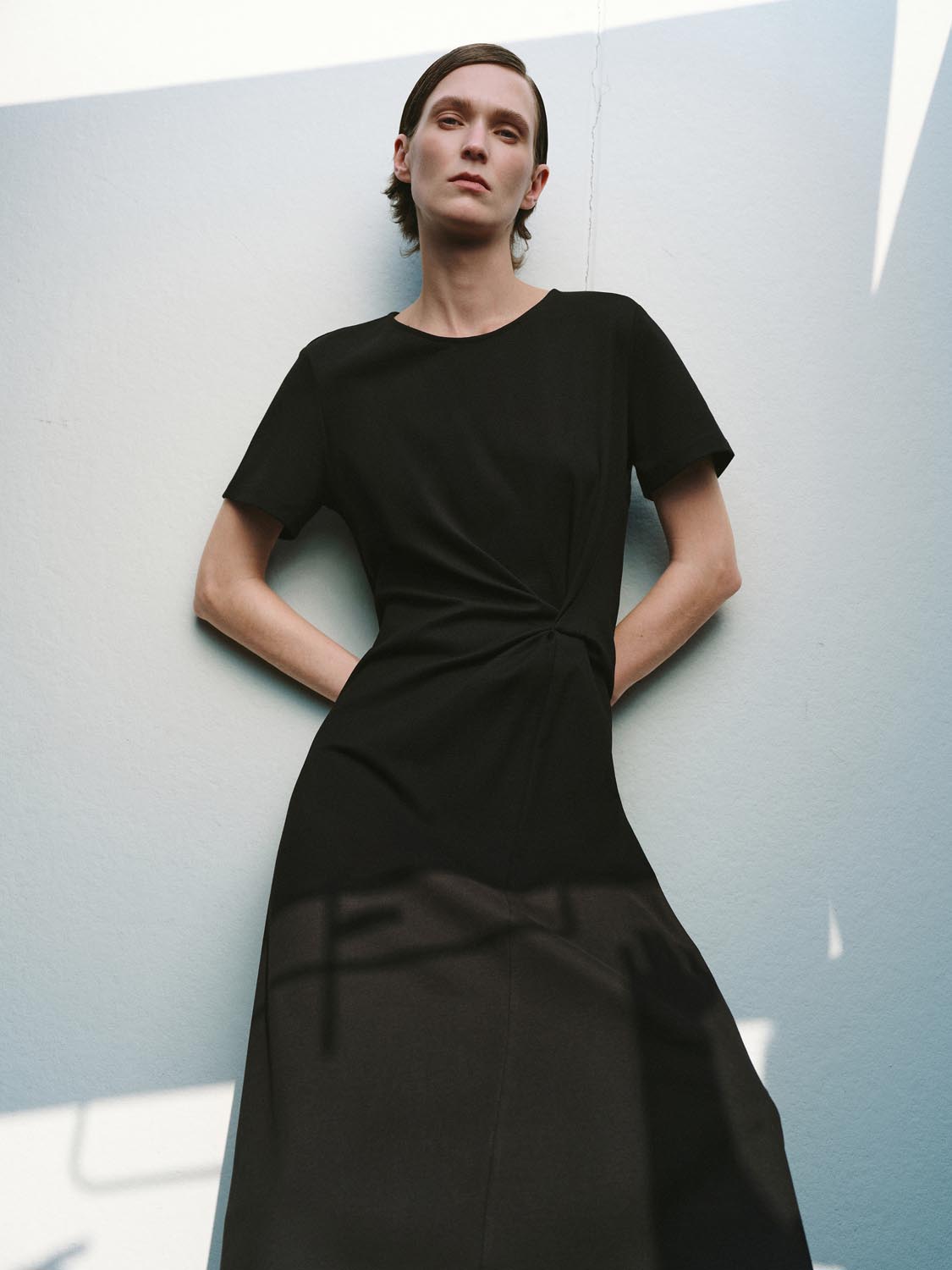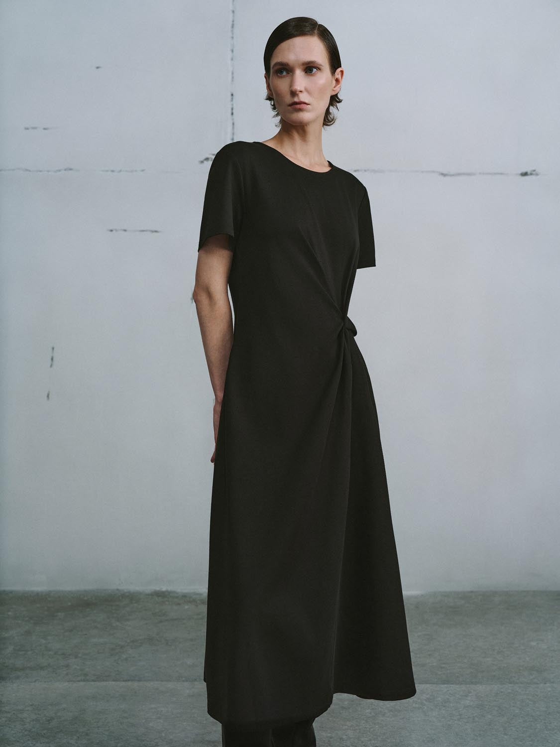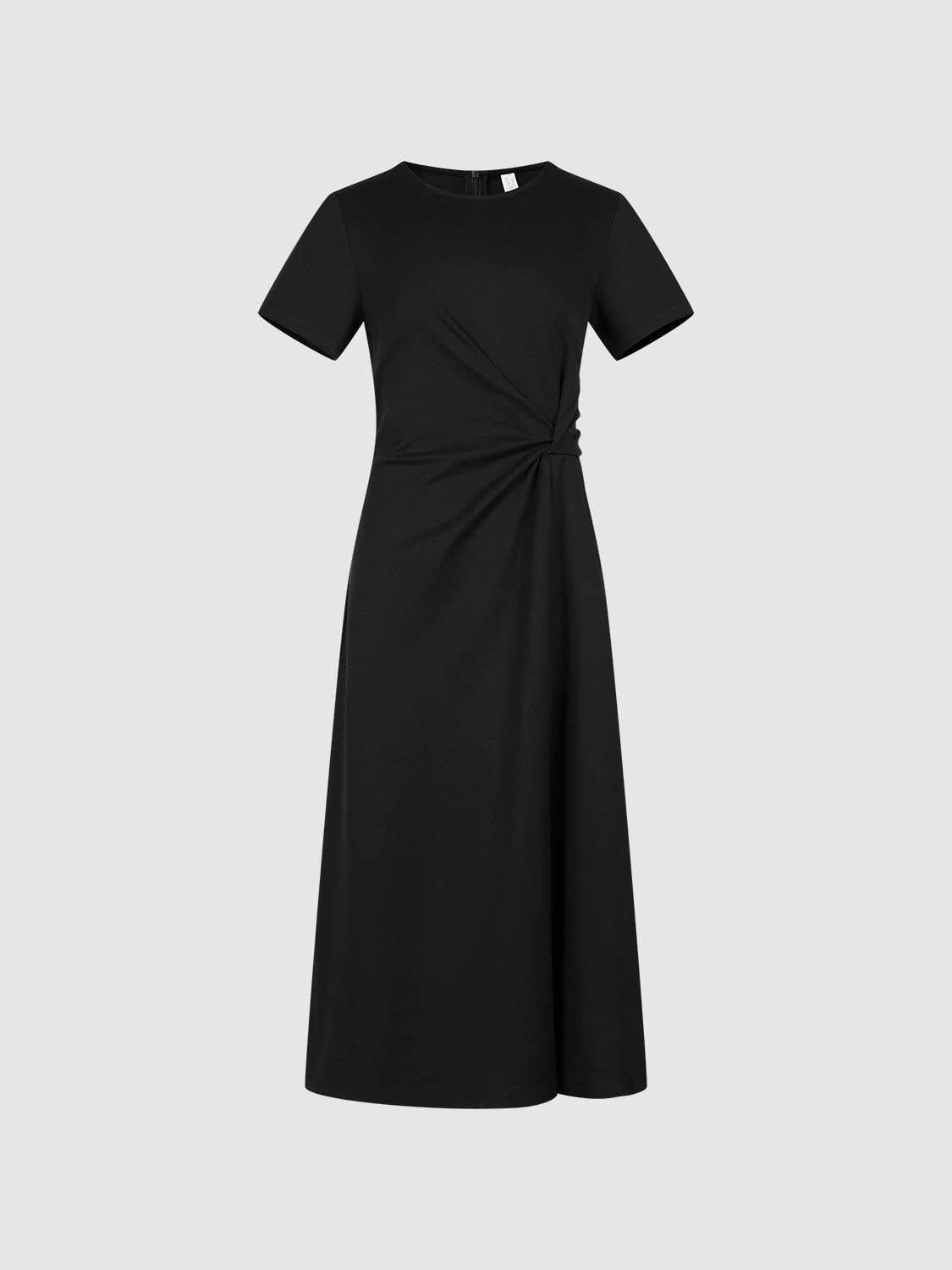 Short Sleeve Knot Front A-Line Midi Dresses