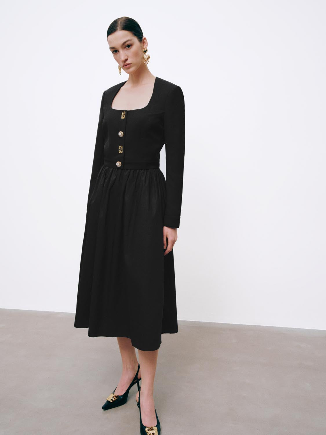 Square Neck Button Detail Long Sleeve T-Shirts