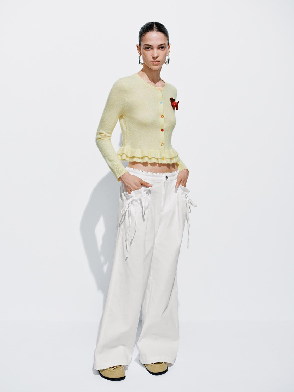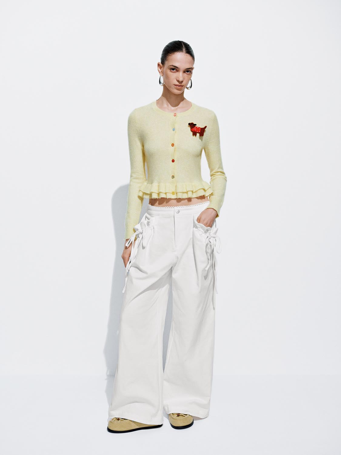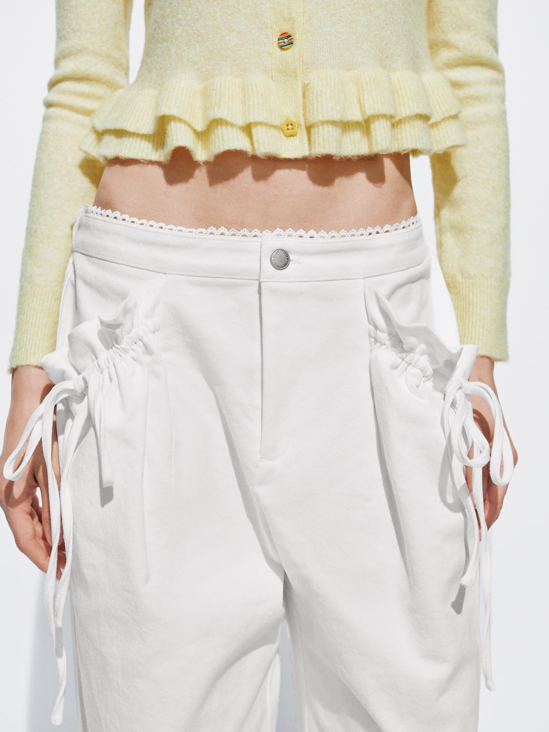 String Décor Asymmetric Wide Leg Pants