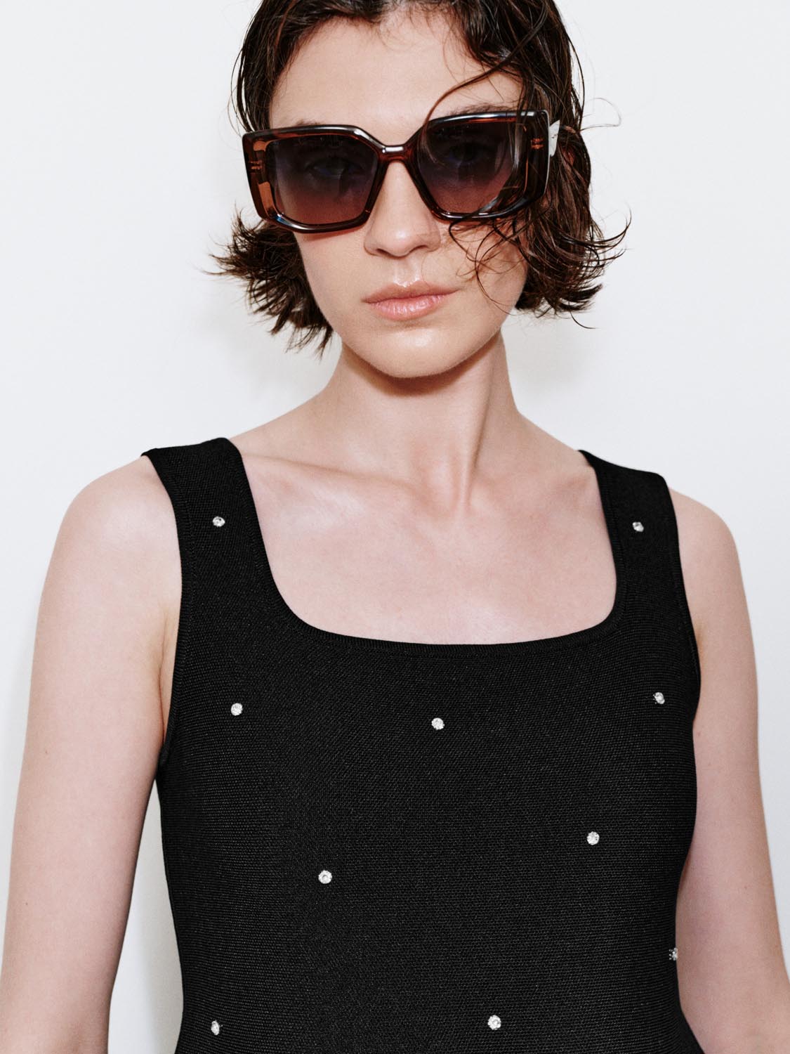 Studded Sleeveless Knitted T-Shirts