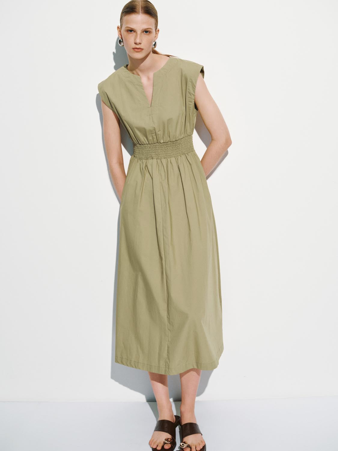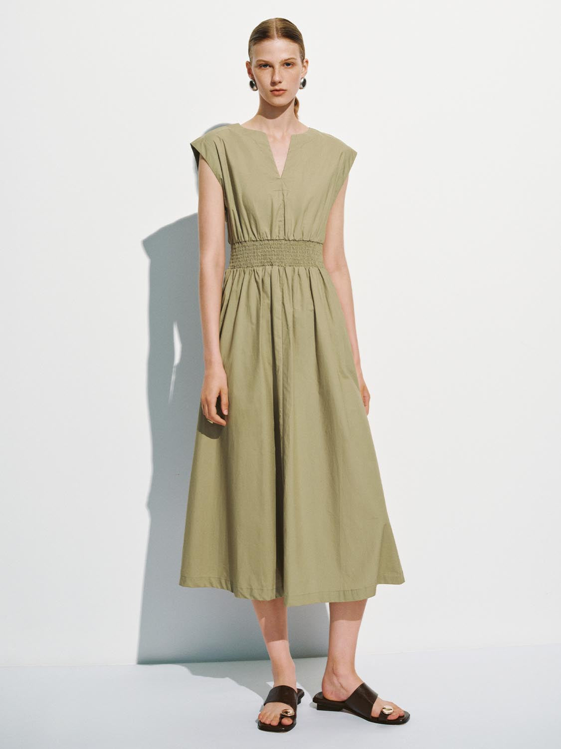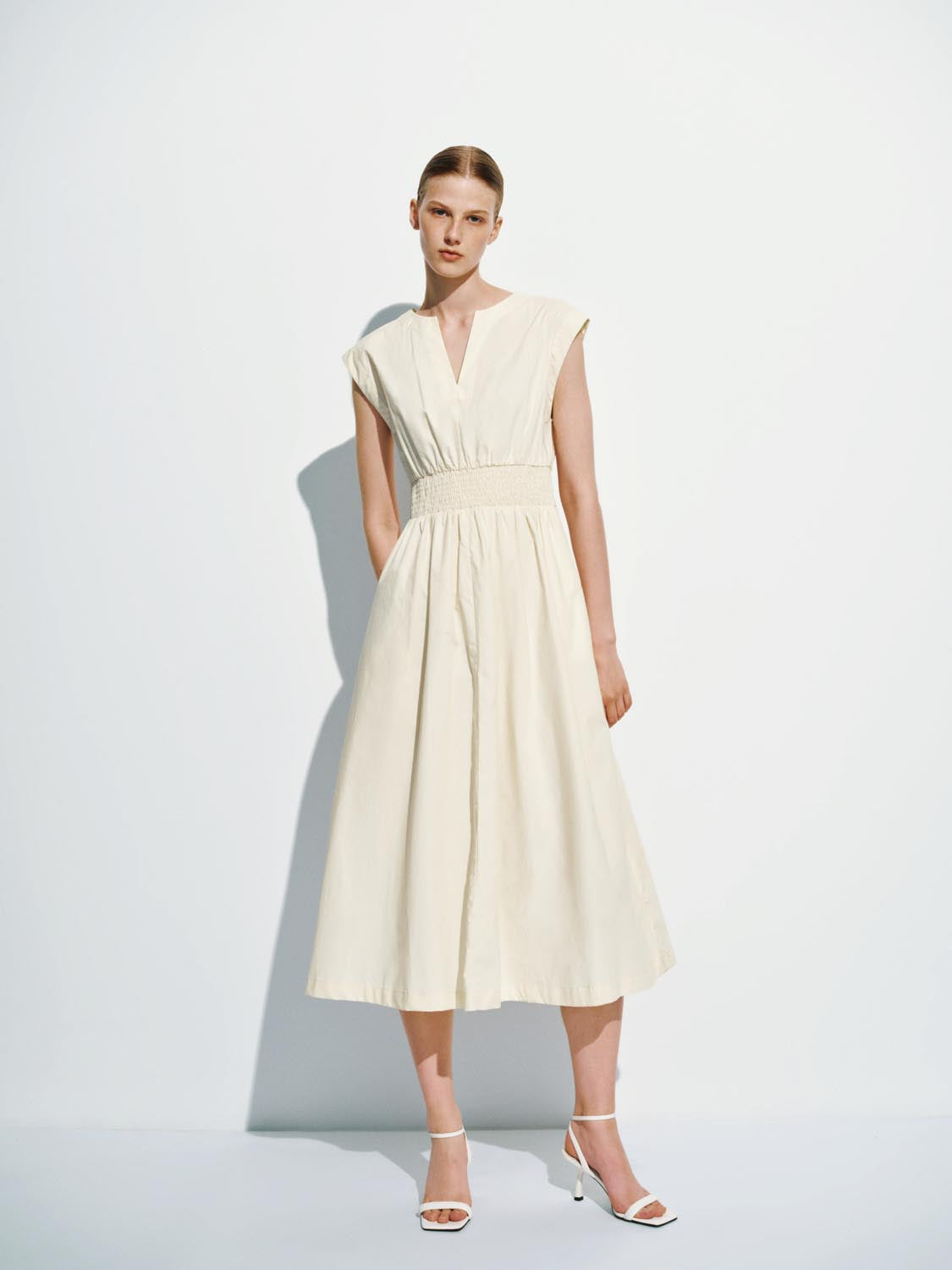 V-Neck Cap Sleeve Skater Dresses